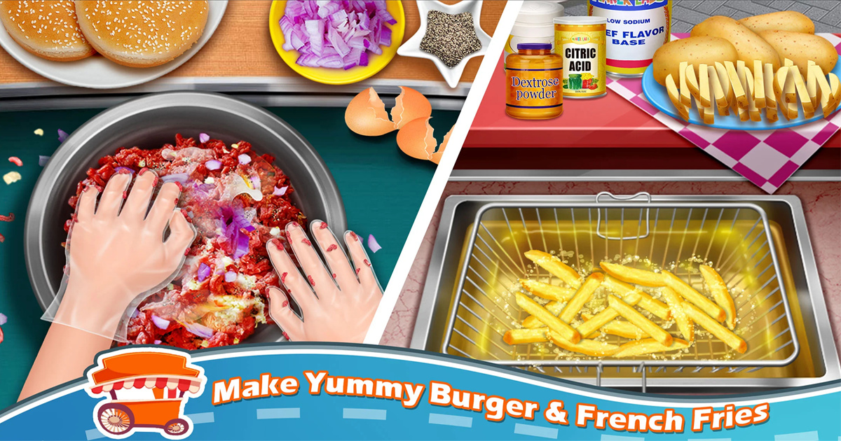 Un festival callejero es un lugar perfecto para disfrutar de la cocina urbana. ¿Crees que tienes las habilidades para satisfacer el apetito de los clientes con tus creaciones culinarias en Street Food? Comienza a preparar tus propios bocados deliciosos en esta increíble cocina virtual. Asa algunos perros calientes y cúbrelos con kétchup y mostaza, elabora hamburguesas, papas fritas, nachos, pizza, y luego añade algunos aderezos exquisitos para asegurarte de que sean tan atractivos a la vista como deliciosos. Te encantará jugar como chef mientras preparas tus platos favoritos, y apreciarás que crear un bocadillo de calidad de chef no desordena toda tu cocina.